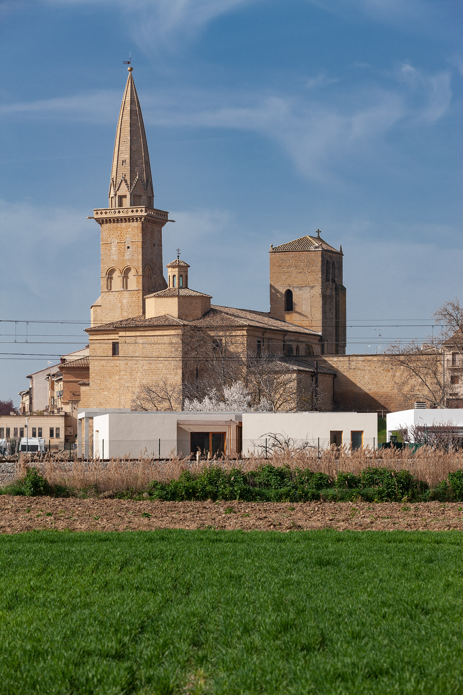 Su emplazamiento se encuentra bajo la magnífica torre aguja del campanario gótico de san Pedro de Olite y frente a una vasta extensión de piezas agrícolas que son aprovechadas por requisito de los propietarios para dirigir las vistas de la casa hacia la sierra de Ujué.
