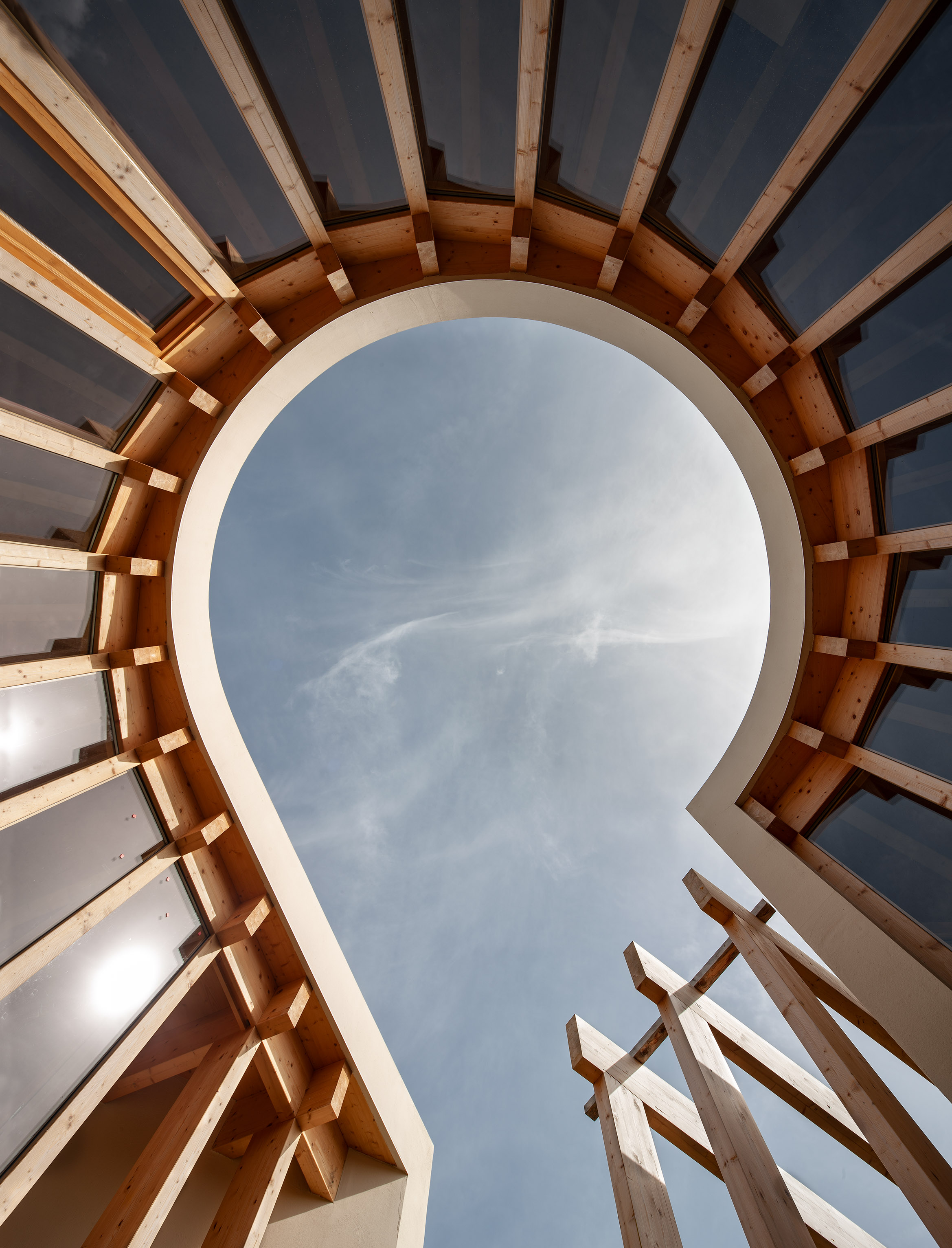 Esta casa levanta sus fachadas ocultando un patio interior que cumple su función arquetípica y cuya forma de lágrima le permite abrirse con discreción hacia su parcela sin perder intimidad en las estancias interiores.