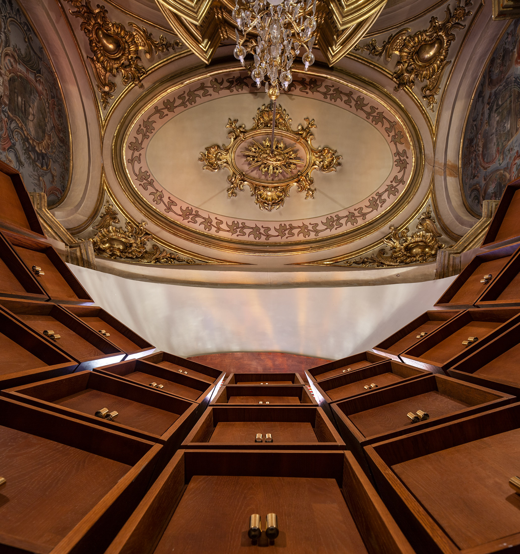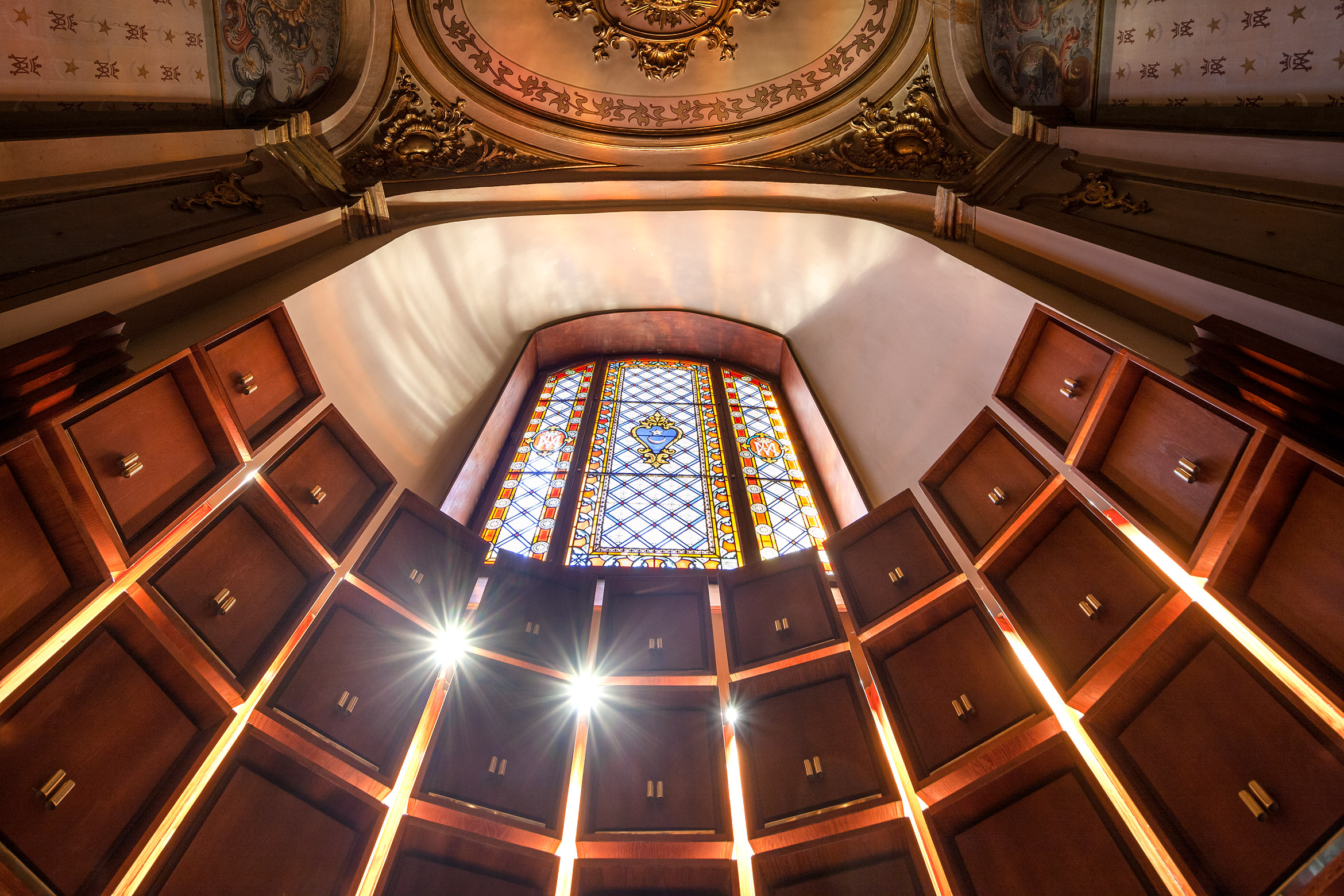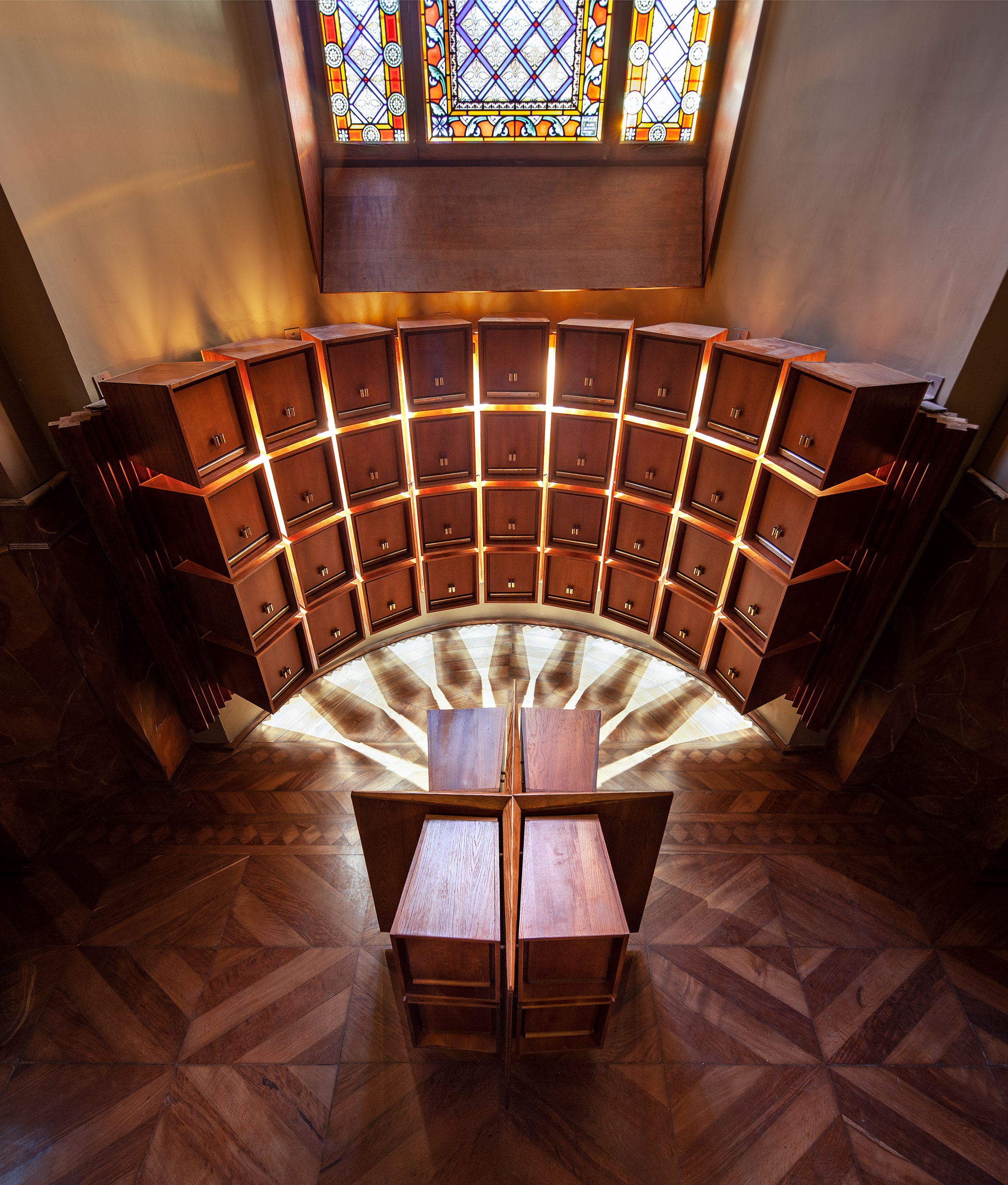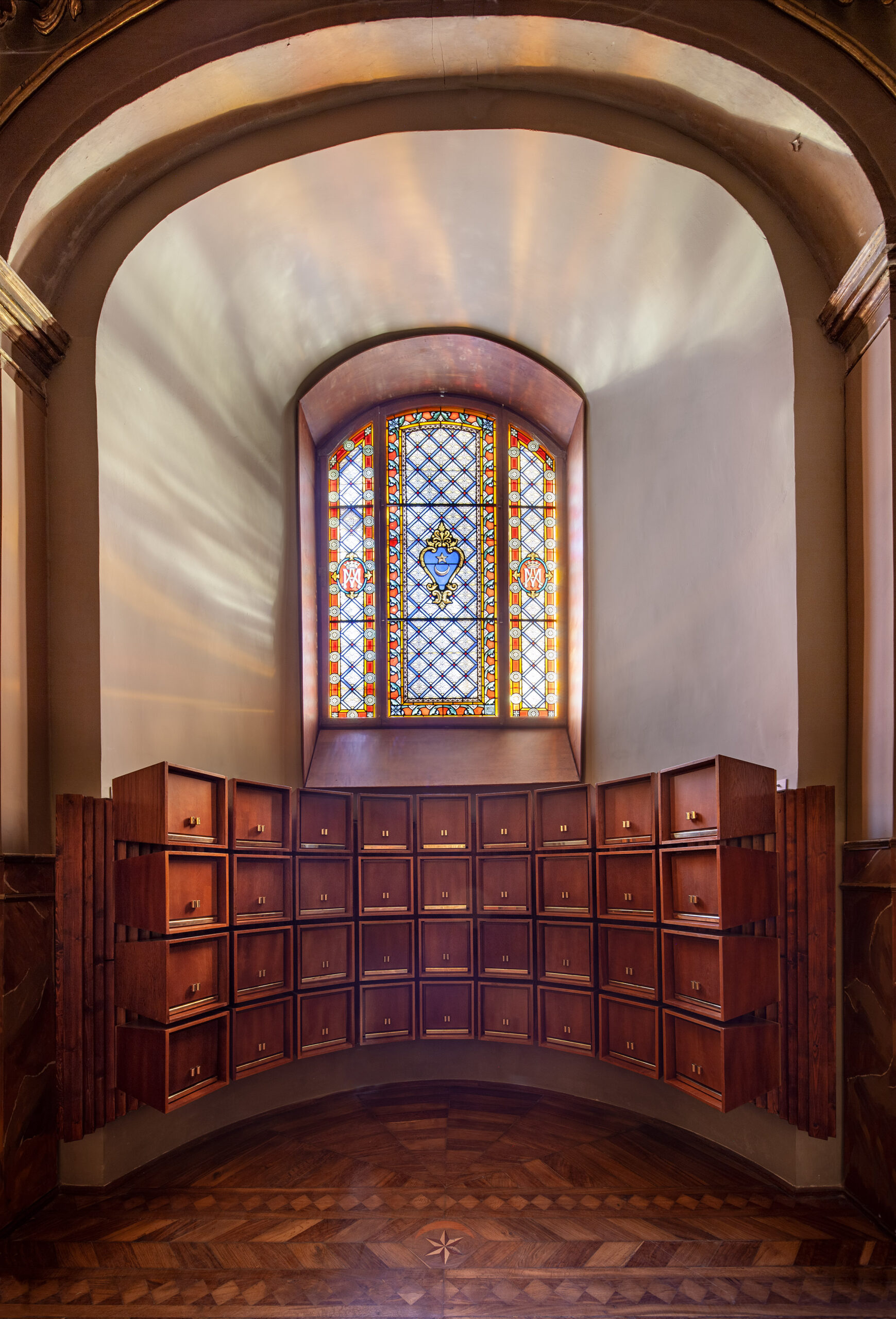 Llegar a expresar lo que dibujan estas sombras y luces tuvo que ser precedido de mucha paciencia de todos…aunque los columbarios se construyeron al inicio de las obras, su montaje tuvo que esperar a las excavaciones, al respeto de los vestigios en el subsuelo, la ejecución de la ventilación del suelo, la reconstrucción de las bóvedas superiores, la restauración y mecanizado de las vidrieras, la recuperación y montaje del pavimento de madera, pero sobre todo al secado de los muros. Años de espera para una pequeña intervención.
