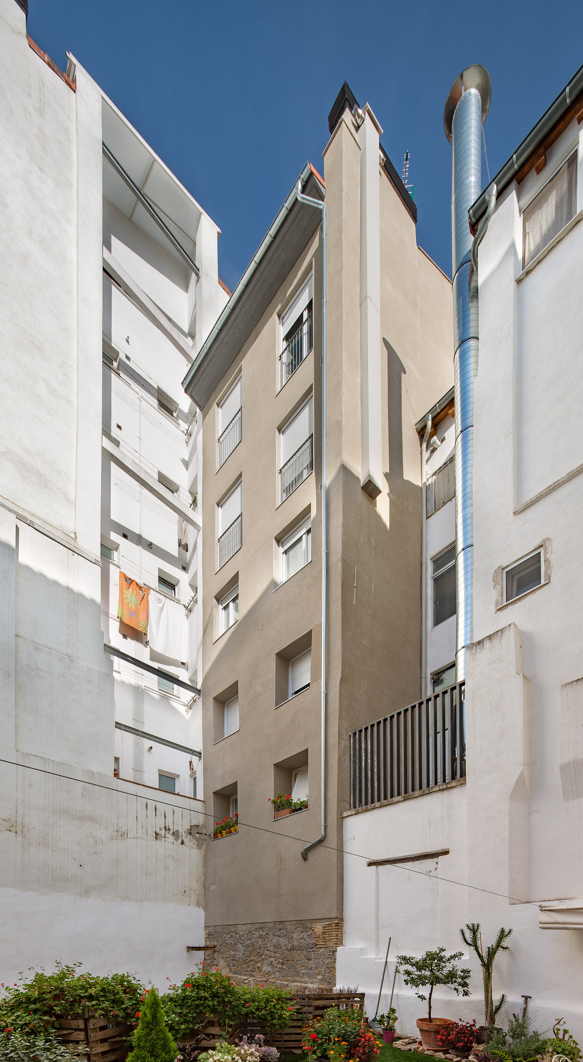 La reconstrucción de la fachada trasera desde el micropilotaje de su cimentación hasta su coronación y encuentro con la cubierta constituyó el trabajo principal en la atención a la estructura del edificio. Constructivamente se trata de una edificación en altura de un entramado de madera maciza apoyado sobre muros de ladrillo macizo que desarrollan todo […]