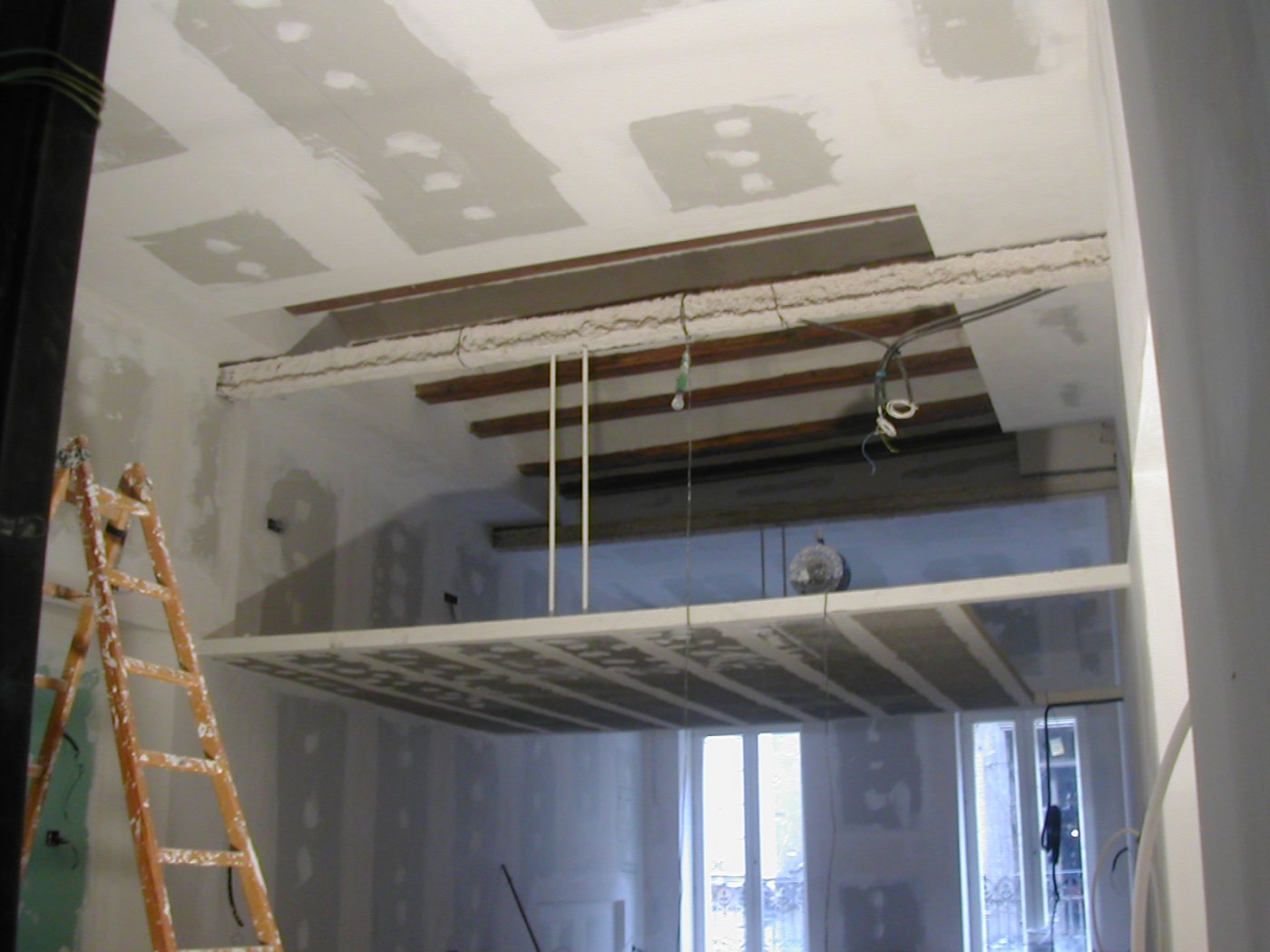 Para la construcción del proyecto hubo que proceder al derribo integral de la planta primera de un edificio, previamente ocupado por servicios sociales. El estado original del inmueble era tan ruinoso que solo se dejaron en pie los muros medianiles de carga y los forjados desnudos de suelo y techo. La contención en el presupuesto guió todo el proyecto para mejor servicio a una joven pareja.